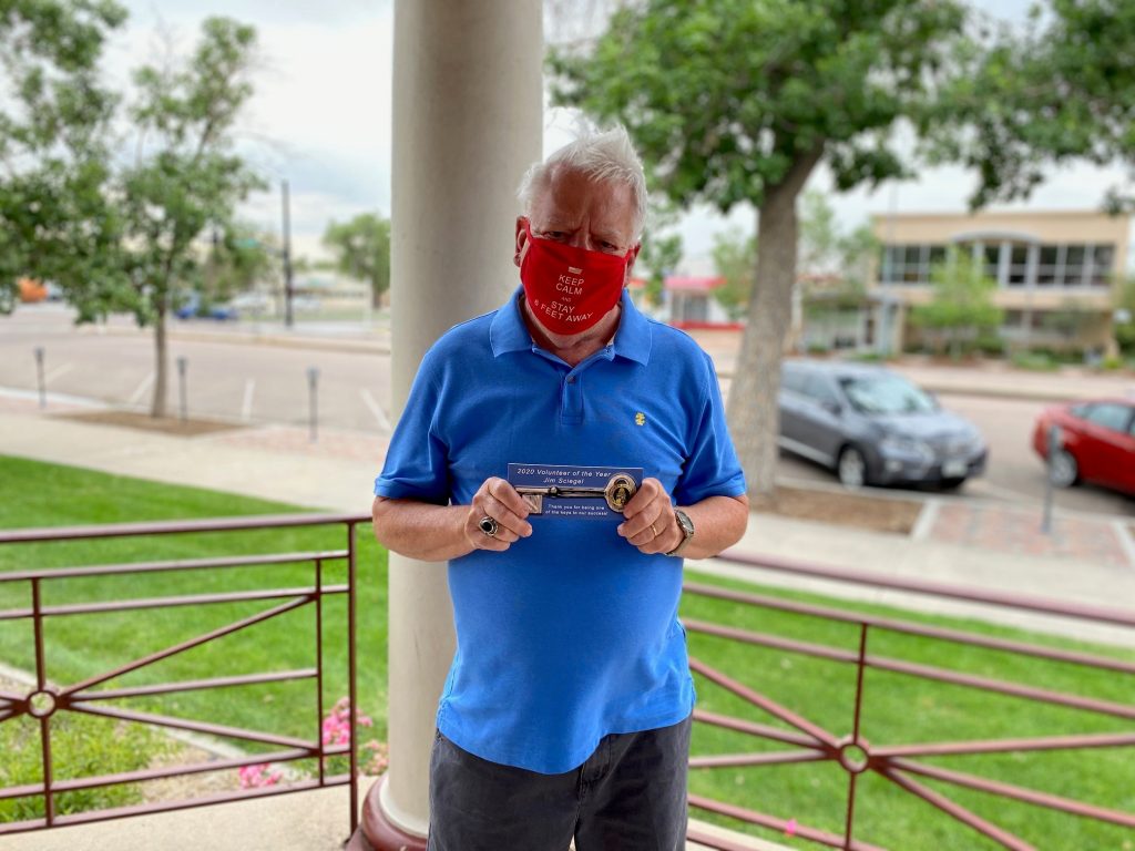 When Jim Sciegel arrived for the final time slot of the afternoon celebration we surprised him with some exciting news. Jim was nominated and selected by the staff to receive the honor of the 2019 Volunteer of the Year. Jim has served primarily at the front desk but has also used his talents and passion for history and education to support our school programs. These volunteer roles require equal parts knowledge, enthusiasm, and affability. Jim not only possesses these critical qualities but has always put his own special spin on it. The Museum Registrar, Caitlin Sharpe shared a sentiment held by all of the staff members, “I always appreciate how friendly he is to everyone. He will see me walking through the lobby and make time to say hello. I also love how he gets into the spirit of things by dressing up for holidays.” This volunteer has become a bit of a legend for his wonderful holiday hats ranging from Santa caps to reindeer antlers. Today he has replaced the funky hats with expressive face masks!
