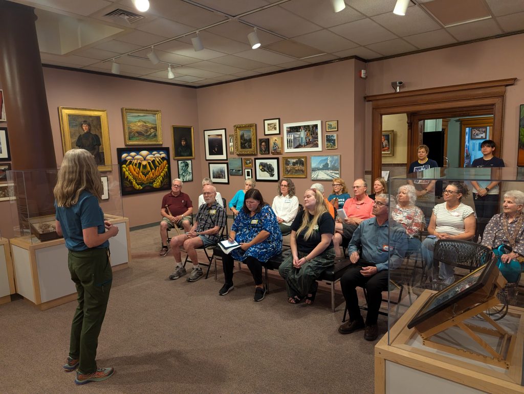 This month, we’d like to recognize our volunteer Gallery Attendants. The team includes 6 returning volunteers and 7 brand new volunteers, all eager to learn and share. The volunteers work specifically in the 50% of the Story: Women Expressing Creativity exhibit. Women’s art represents approximately 10% of works collected by museums. 50% of the Story transforms the CSPM collection to more accurately reflect the complexity, diversity, and uniqueness of the Pikes Peak region. Using historic artwork and artifacts, alongside contemporary pieces, the 50% exhibit creates a beautiful conversation between women across time, demonstrating how they’ve always told their stories through art and creativity.