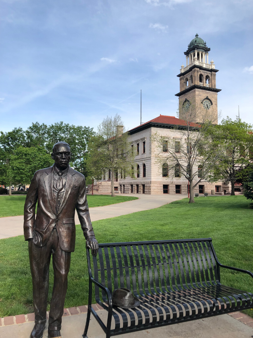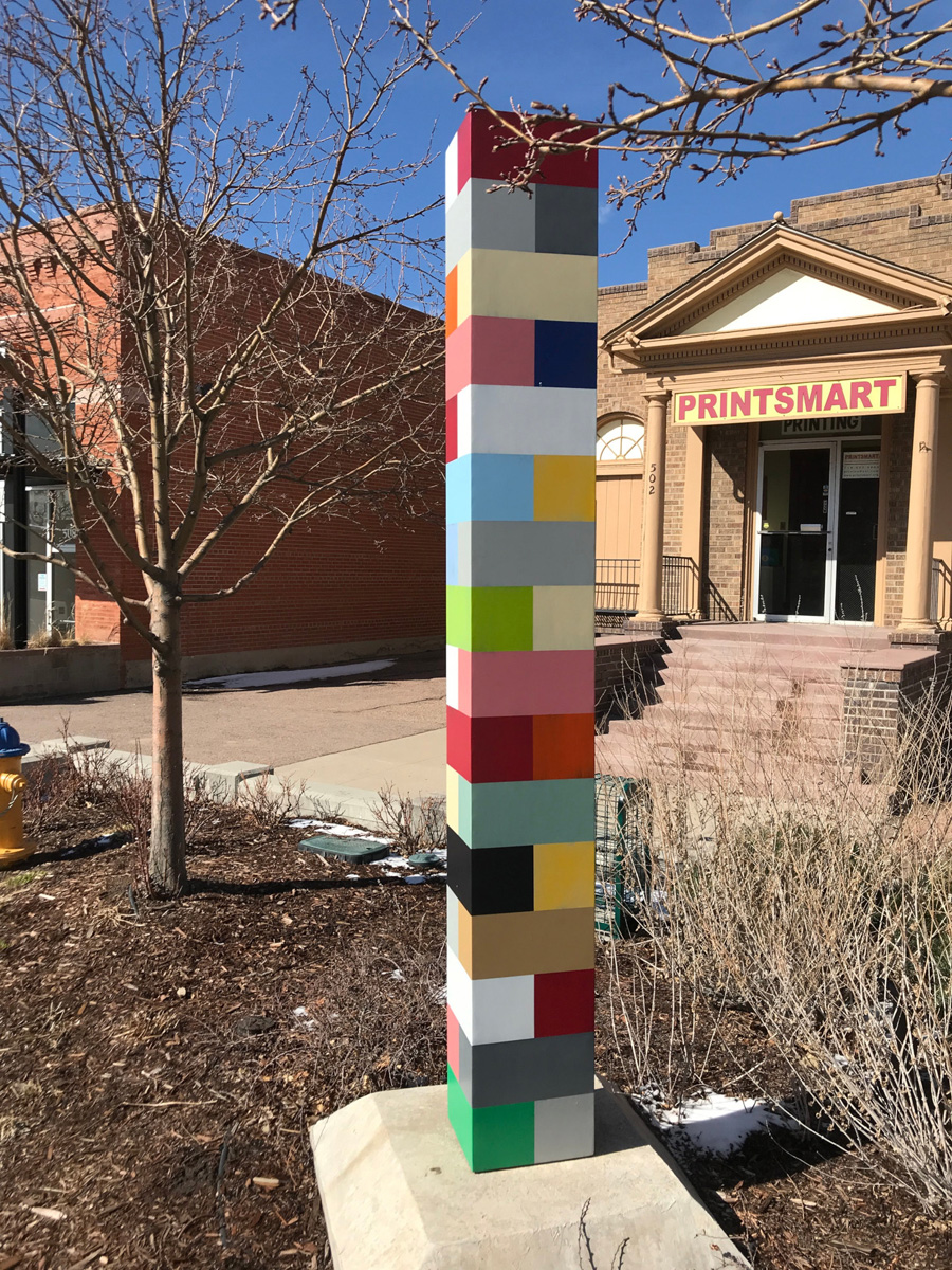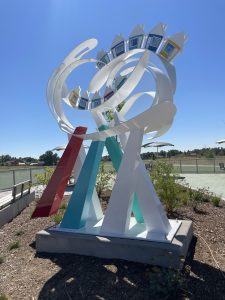 The second new sculpture is Community Imagination by artist Joshua Wiener and is based on conversations in Colorado Springs’ Southeast Community. Wiener is a Boulder based artists who has installed public art throughout the United States. Located in Panorama Park, this sculpture developed from a series of community workshops. The sculpture’s design brings together the ideas of residents of different ages and backgrounds. These artmaking meetings focused on people thinking of both their identity and that of the Southeast Community.