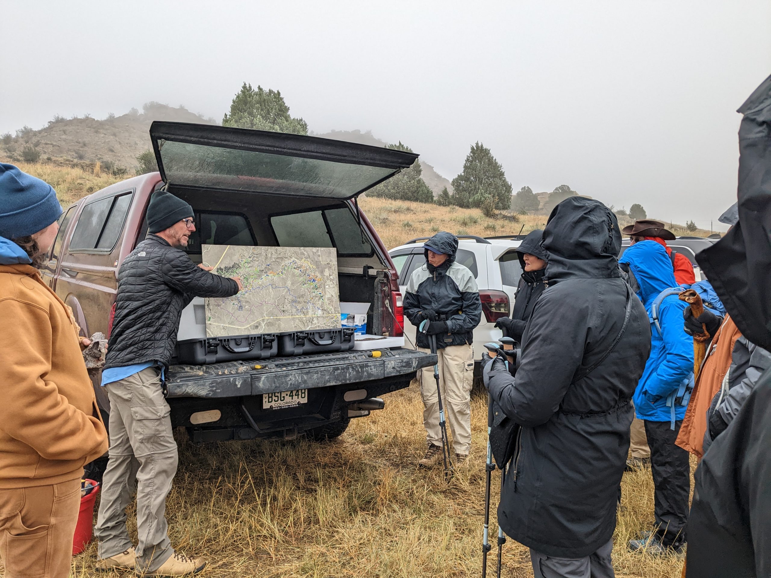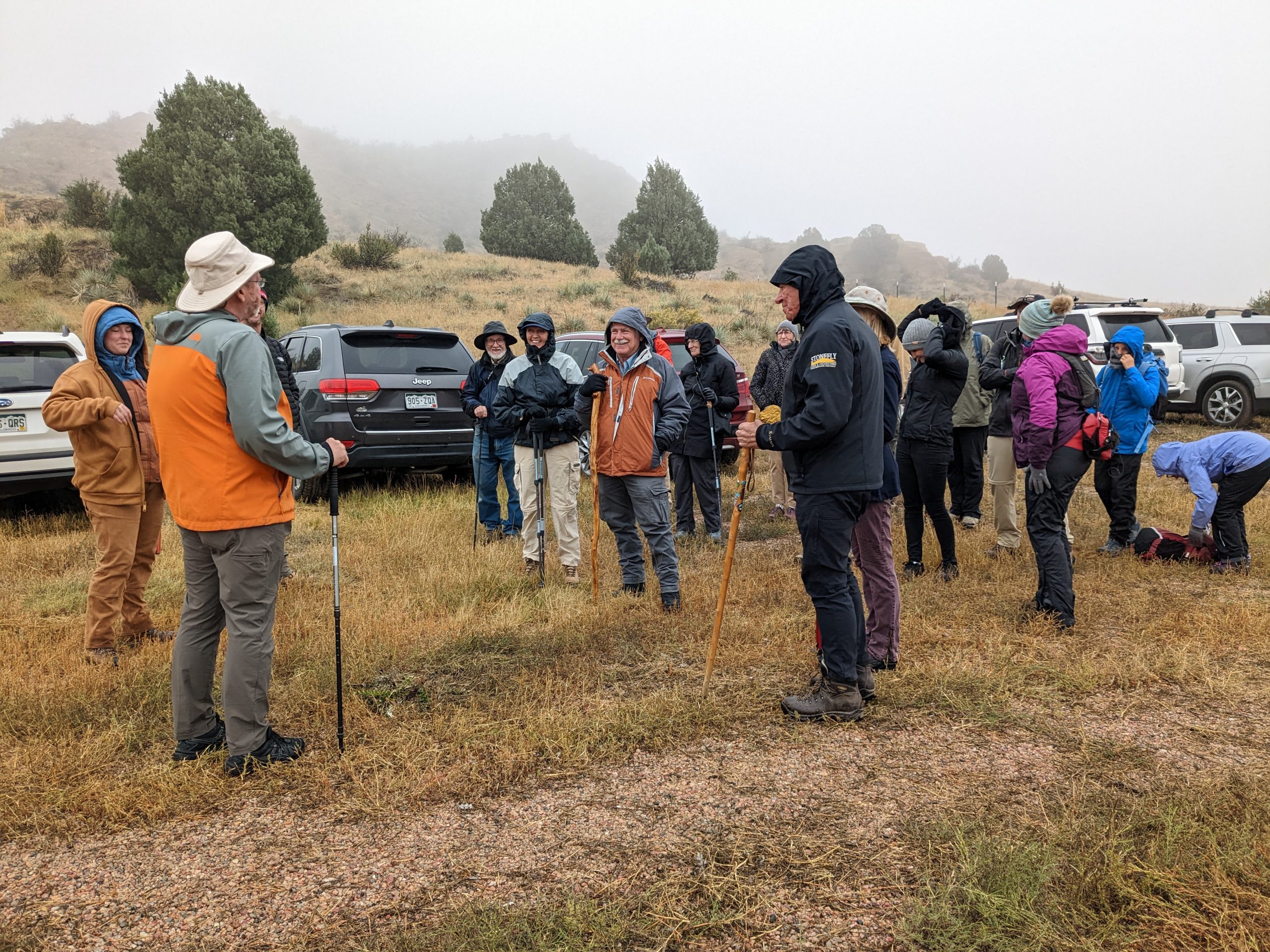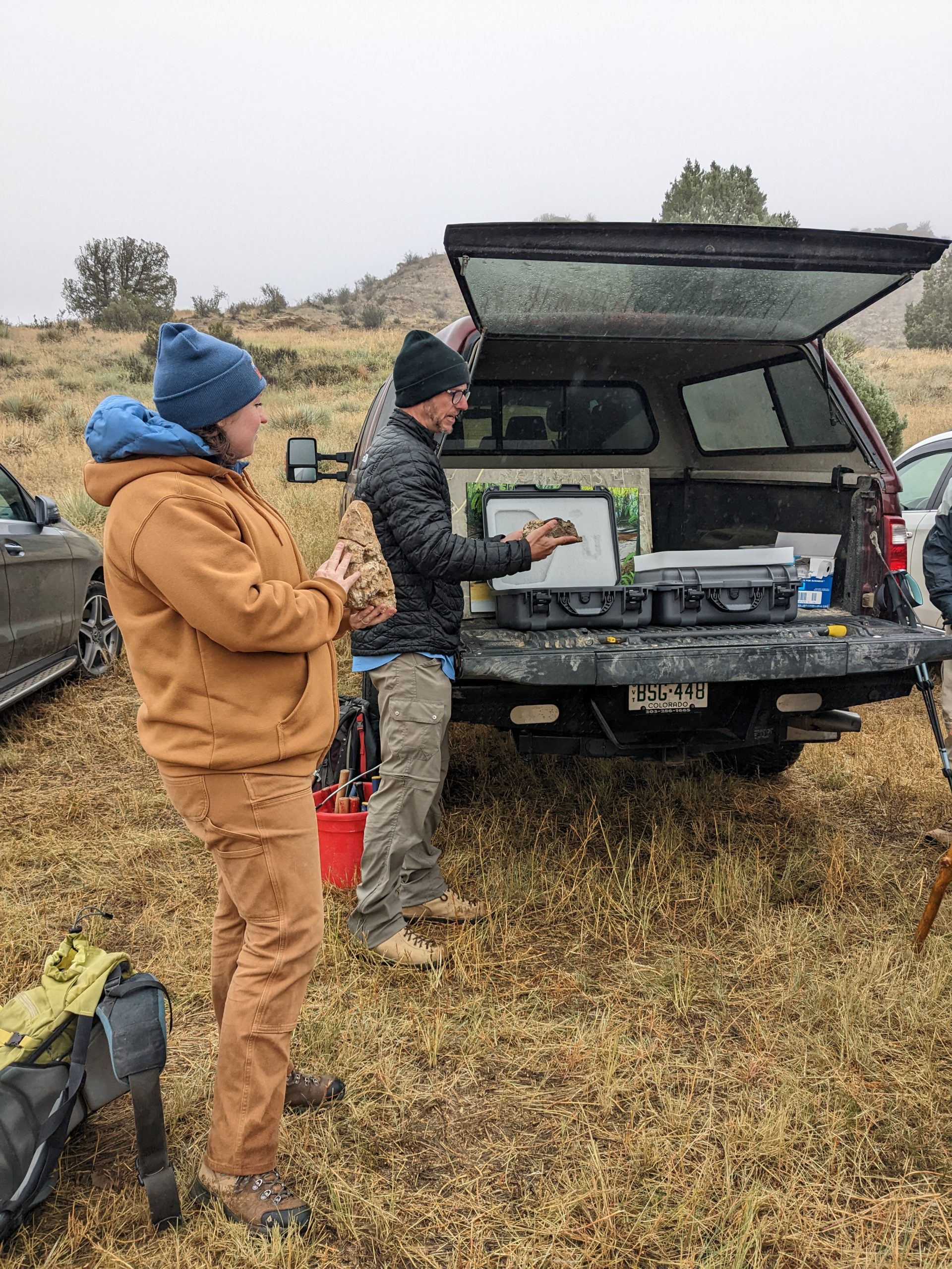 Although the day was chilly and foggy, our group was eager to go out in the field. The DMNS Team provided a unique, interactive experience for the group. Clock Tower Society members learned about this partnership between the paleontologists and the City of Colorado Springs Parks, Recreation, and Cultural Services Department. The group hiked to a location to search for plant fossils. Members found several interesting specimens during the visit. Some of the group hiked further with Dr. Tyler Lyson to look for vertebrate fossils.