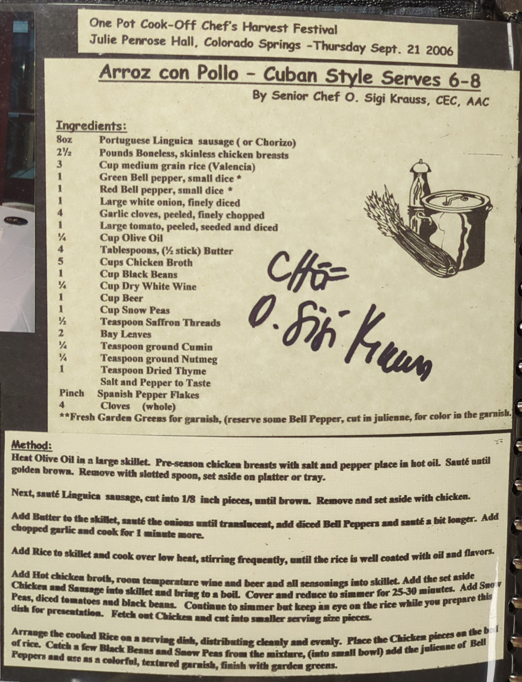 Arroz Con Pollo- Cuban Style, by Chef Sigi Krauss.