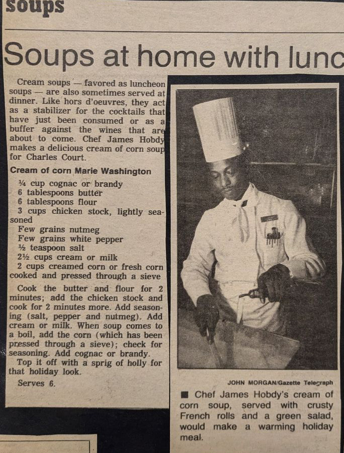 Cream of Corn Marie Washington, by Chef James Hobdy.