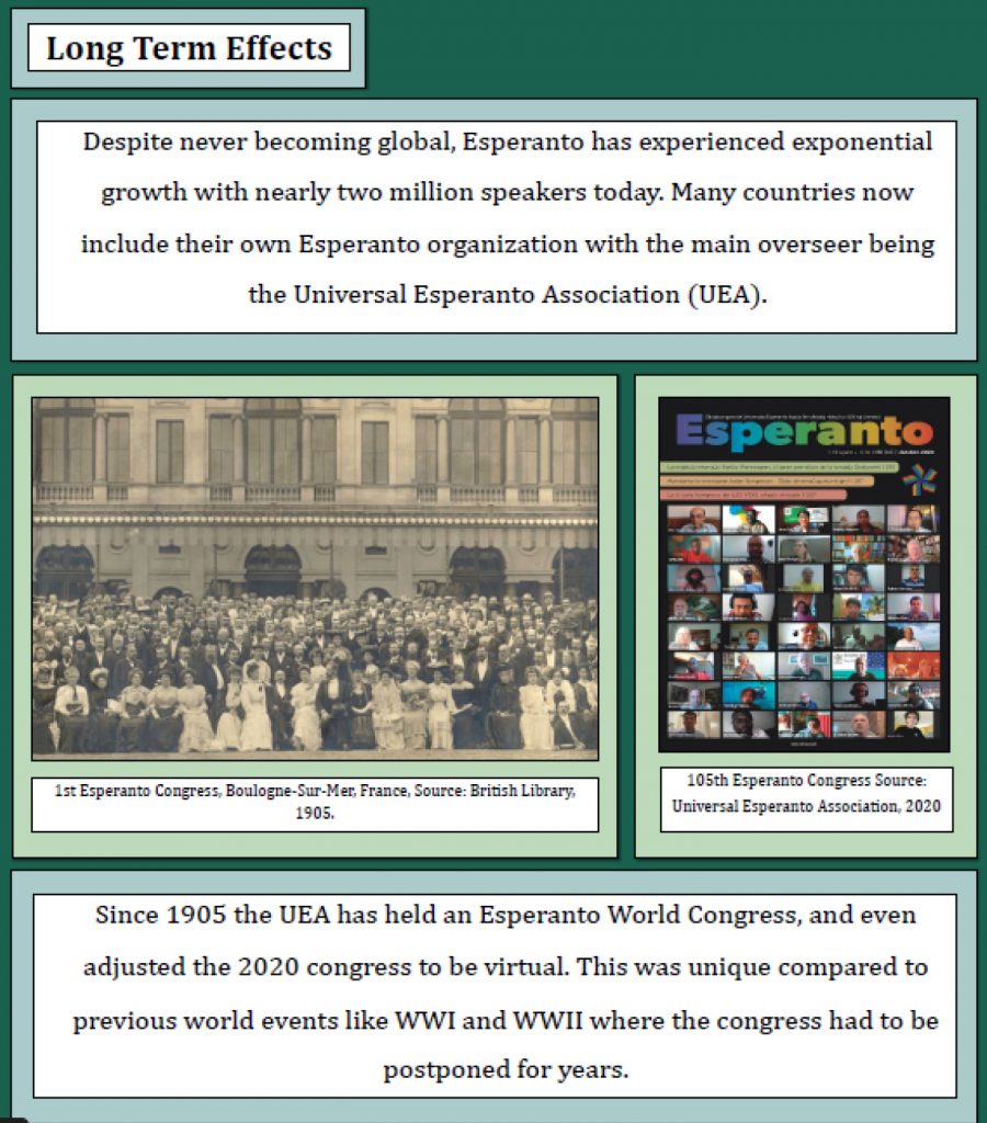 This year, Liberty High School 11th grader, Veronica Masztalerz was chosen for her exhibit entry “Esperanto: An Ophthalmologist’s Vision for Linguistic World Peace.” Student’s competed virtually in this year’s event which presented unique challenges as they had to convert their exhibit display boards to a virtual presentation. This year’s theme was Communication in History: The Key to Understanding.