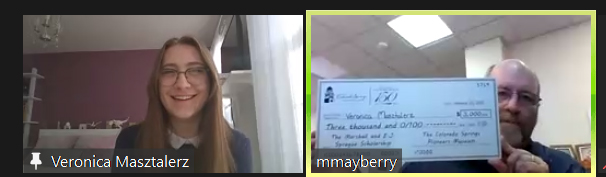 Museum Director, Matt Mayberry, presented the scholarship to Veronica Masztalerz during the Regional History Day virtual awards ceremony.