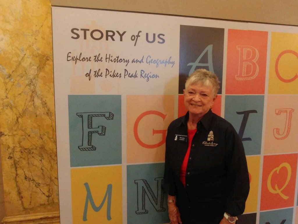 Beyond exploring her new home in the Pikes Peak region Pat’s desire to volunteer is driven by her appreciation for museums, “I’ve always loved museums, no matter where I have lived or visited. After I retired and was an active docent for 10 years at the Houston Museum of Natural Science. Volunteering fills my need to learn, to engage with other people and hopefully get them excited about their visit.” Coming from a natural science museum she was surprised to find out how much she loves the past, “I had no idea that I like history! Plus, I am in love with the Courthouse itself. The building speaks to me.”