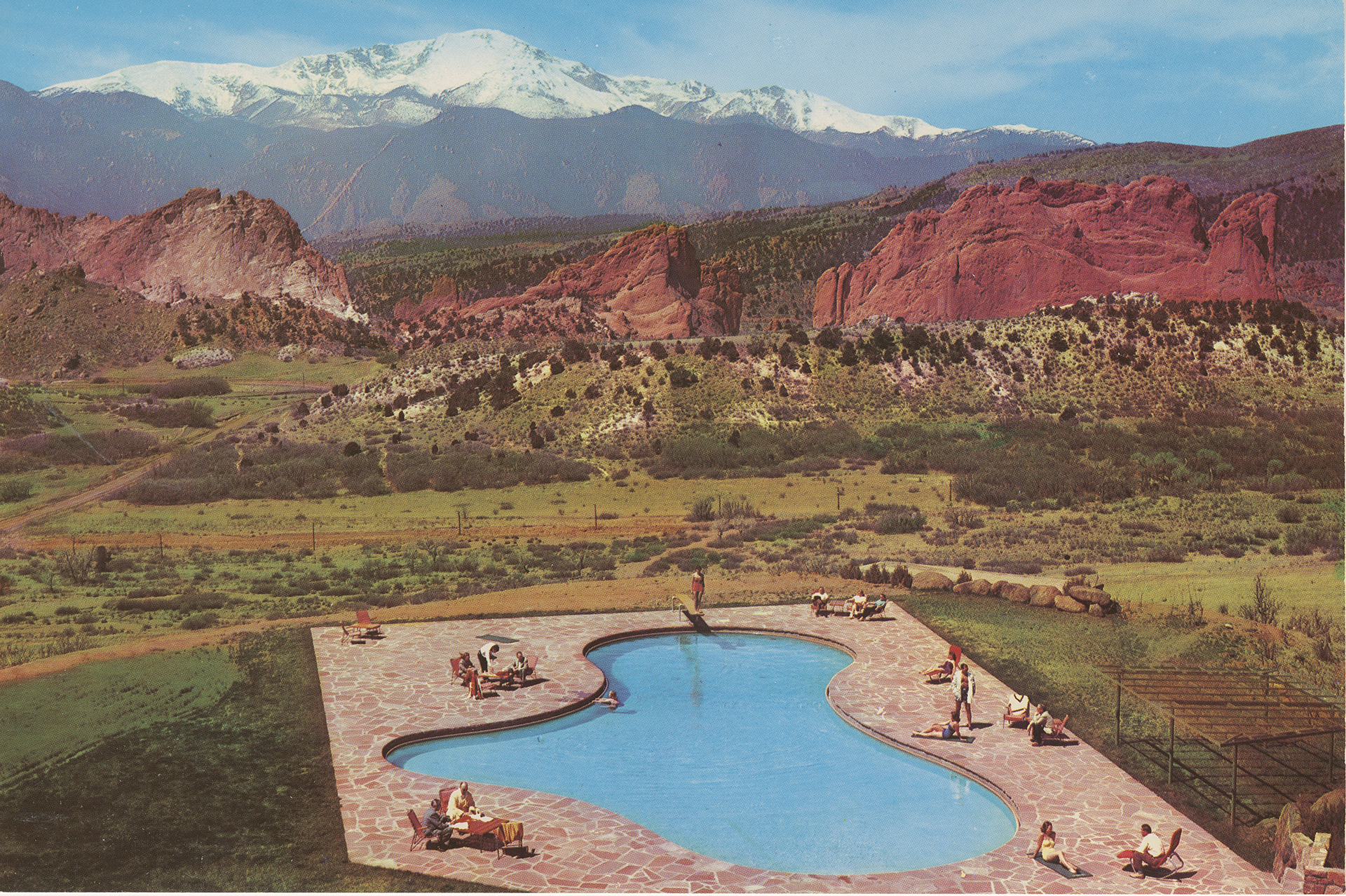 Hill’s newest purchase of 1630 acres atop the Mesa was fueled by a desire to build something as stunning as the scenery it overlooked. Atop the Mesa, Hill built the Garden of the Gods Club. The luxurious club included a golf course, a 90,000 gallon heated swimming pool, stables, tennis courts, shopping center, and even an oil well.