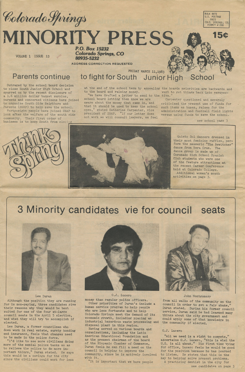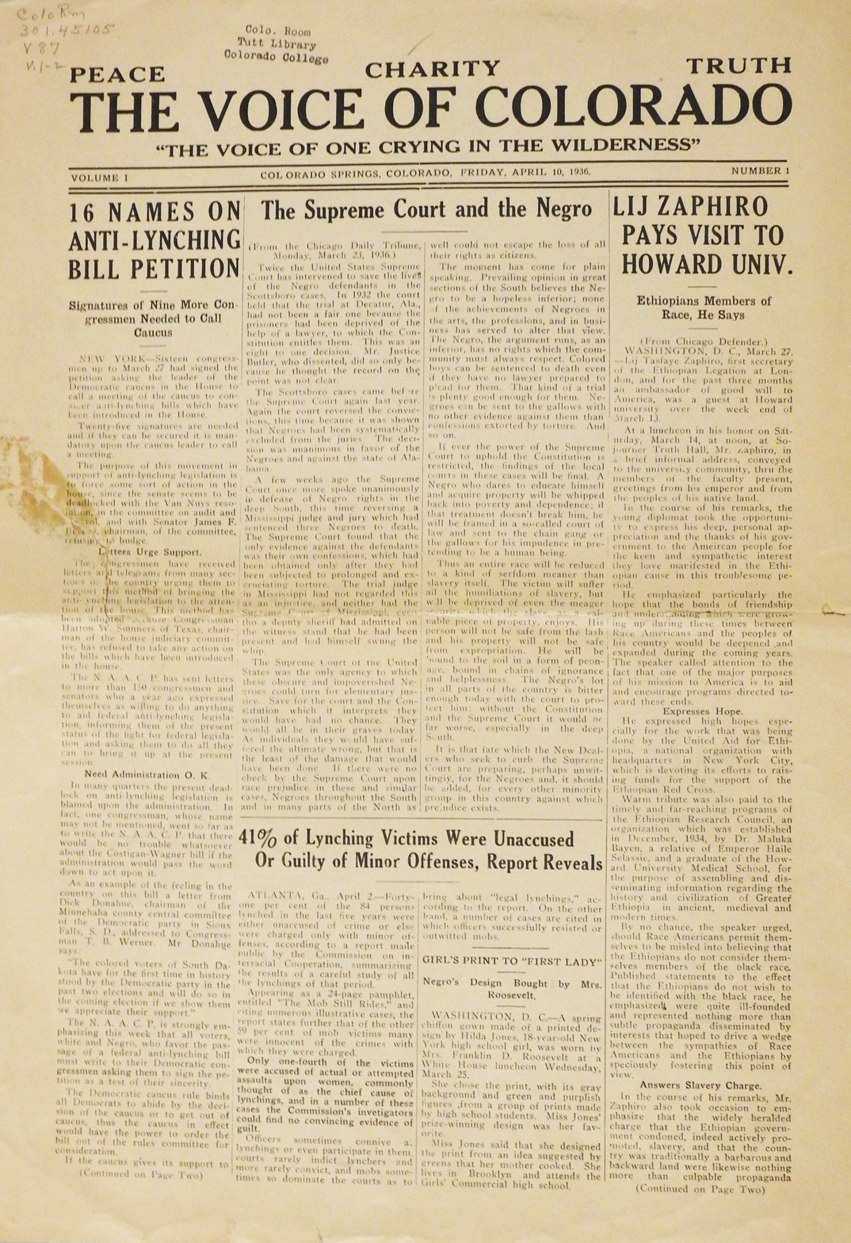 The existence of newspapers focused on the African American experience has persisted consistently throughout Colorado Springs’ history. In the 1930’s The Voice of Colorado discussed topics such as lynching and racial segregation at Prospect Lake. In the 1980’s the Colorado Springs Crusader was published with the intention of producing “a quality community newspaper…to report on all minority activities.” In 1991, while serving in Iraq, James Tucker founded the African American Voice Newspaper, which is still in publication and focuses on issues related to Denver, Colorado Springs, and Pueblo. African American newspapers have played a critical, and continual, role in uniting and recognizing the African American communities of Colorado Springs and the Front Range. These newspapers were built on the ideology of community and communication. From former slaves to war veterans, members of the African American community of Colorado Springs have made sure there that their voices, interests, and concerns have been recognized.