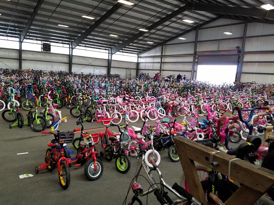 The event started in 1983, when a crowd of people showed up to Bob’s business. Unbeknownst to him an anonymous prankster had published an ad for a charitable giveaway at his store. Bob asked the crowd to return later and promised he would have food to give away. Bob decided to create an annual event and moved the giveaway to coincide with Christmas to help those in need during the holidays. The event relies on community involvement and every year the community has donated food, toys, space, and time. The most popular item among kids are bicycles. For over a decade local business Ted’s Bicycles has helped repair and tune-up donated bicycles, all free-of-charge.