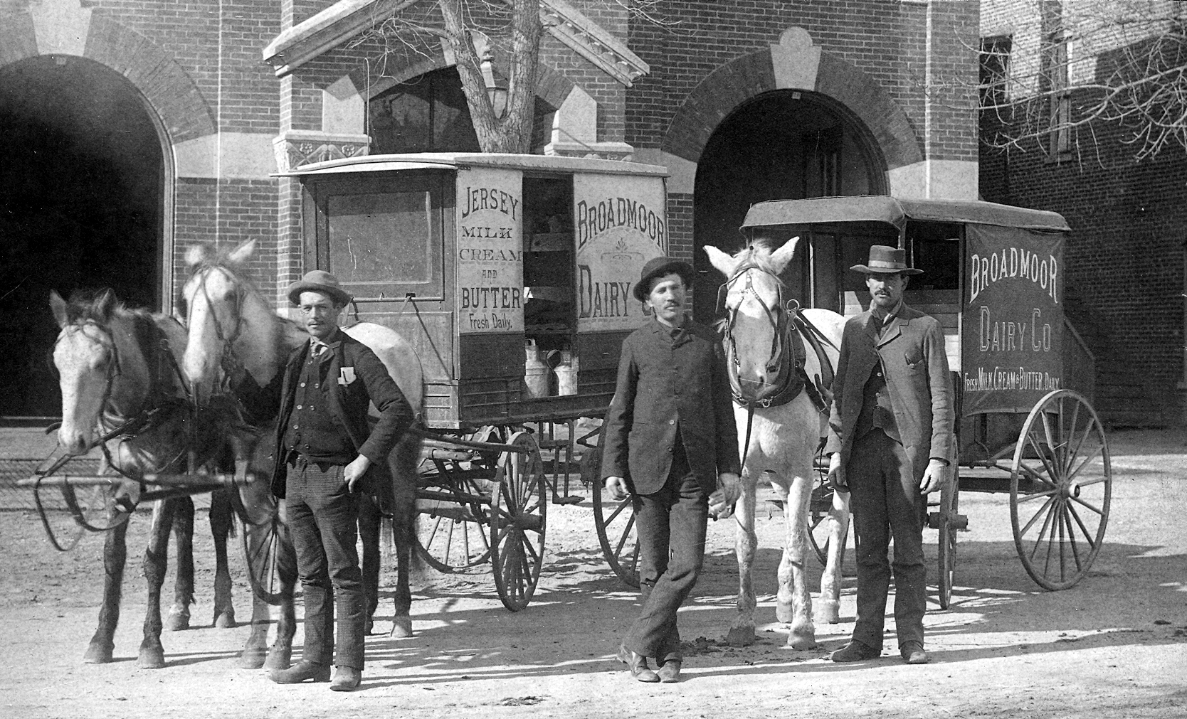 The piedmont below Cheyenne Mountain, just south of town, became known as the Broadmoor. Early irrigators tapped into Cheyenne Creek, building ditches and reservoirs for agriculture. The Broadmoor Dairy was a large operation that provided fresh milk and cream to regional residents and tuberculosis sanatorium patients for many years. Owner Count James Pourtales, a Prussian diplomat who arrived in 1885, formed the Cheyenne Lake, Land, and Improvement Company, built a new reservoir, and divided the land into large lots.