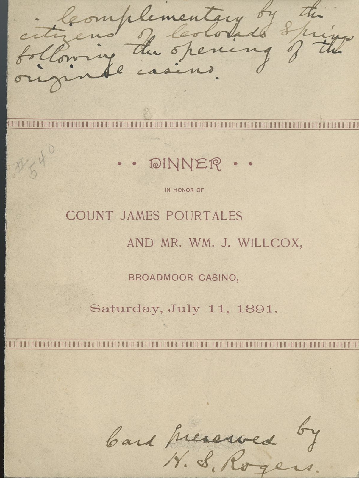 Several wealthy residents built the Cheyenne Mountain Country Club, formally organized in 1891, on one of these lots, with tennis, golf, and horses as amenities, but the polo field became its most famous diversion. Count Pourtales built a casino that opened also in 1891, beyond the city limits and its restrictive ordinances. Offering live music, cocktails, and gambling, he intended a palace of refined pleasure to complement the nearby country club.