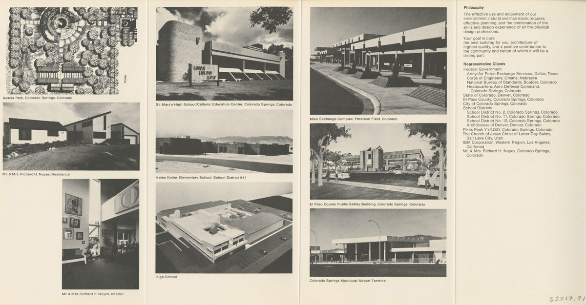 Clifford was not only a significant planner in our nation’s history, but also a prolific architect. Responding to Colorado Springs’ growth, he completed numerous education buildings, among them the Centennial Campus of Pikes Peak Community College; and ones at Colorado College, the University of Colorado at Colorado Springs, and the United States Air Force Academy. He completed a large number of school buildings for Academy School District 20 and Harrison School District 2. Among his signature civic buildings are the downtown Colorado Springs Jail, the Alamo Corporate Center and with his long-time friend and associate John James Wallace, the El Paso County building and Pikes Peak Center complex. His corporate projects included ones for Current Inc., Goodwill Industries, IBM and the corporate offices of GE Johnson and Nunn Construction companies. His health care work included projects for the Penrose-St. Francis hospital system. Of particular significance, with both his planning and architectural practices, he completed the Downtown Action Plan which has been instrumental in shaping the development of Downtown Colorado Springs.