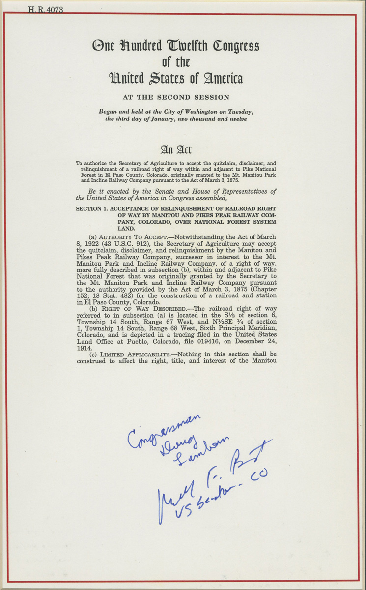On February 1, 2013, the Incline became officially legal and open to the public after the Manitou Springs City Council voted 6-0 for the resolution allowing the trail’s recreational usage. In a dedication ceremony, city councilman Scott Hente broke a bottle of sparkling apple cider on the infamous “No Trespassing” sign to inaugurate the Incline. The sign served as a favorite photo spot for hikers and was donated to the Pioneers Museum.