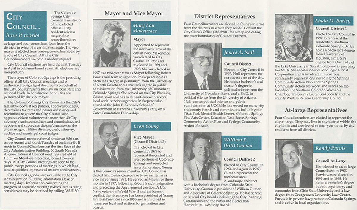 In 2010 voters considered Initiative 300 which would abolish the city-manager style of governance and instead put into place a strong-mayor form. David and Chris Jenkins, who ran the Nor’wood Development Group, heavily funded the campaign supporting the initiative. Initiative 300 passed and local businessman Steve Bach was elected as the first strong-mayor of Colorado Springs.