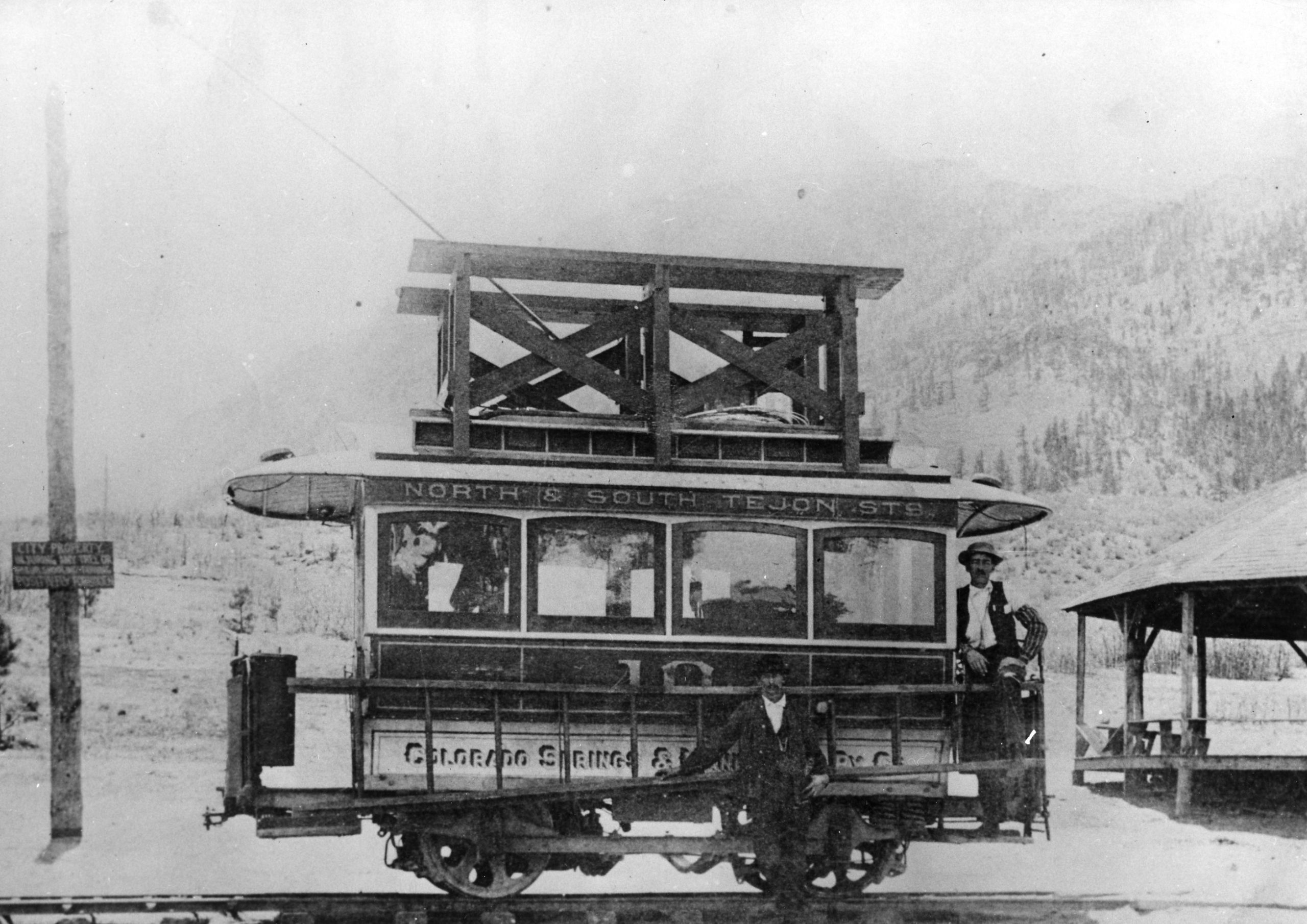 The trolley lines suffered neglect, but in 1901, Winfield Scott Stratton bought the company and used his considerable fortunes from Cripple Creek to reinvigorate the city trolley system through what became the Colorado Springs and Interurban Railway Company. He spent over $2 million to create one of the best transit systems in the country. Lines were greatly extended, including a popular route to Stratton Park at the entrance to Cheyenne Canyon where bands played in the pavilion on weekends. This line also provided access to the Boulevard Park baseball stadium in Ivywild, home of the Millionaires team, and “Bathhouse John” Coughlin’s zoo and amusement park along Cheyenne Creek. Prospect Lake, Evergreen Cemetery, and eastern neighborhoods were connected, a new power plant was built on Sierra Madre Street, and 29 luxury trolley cars were built in the shops on Tejon and Moreno between 1905 and 1911. At the height of the trolley’s success, the line served nearly all parts of the city to create mixed use, walkable neighborhoods and easy access to nearby schools, grocery stores, parks, and other services. Eventually the trolley company could not compete with changing technologies. Busses began competing with trolleys in 1926; they proved more flexible to plan and open routes and cheaper to operate. All trolley operations ceased by April, 1932. The Colorado Springs Bus Company began operations the next month. Most tracks were torn up as the automobile became the dominant form of transport in America.