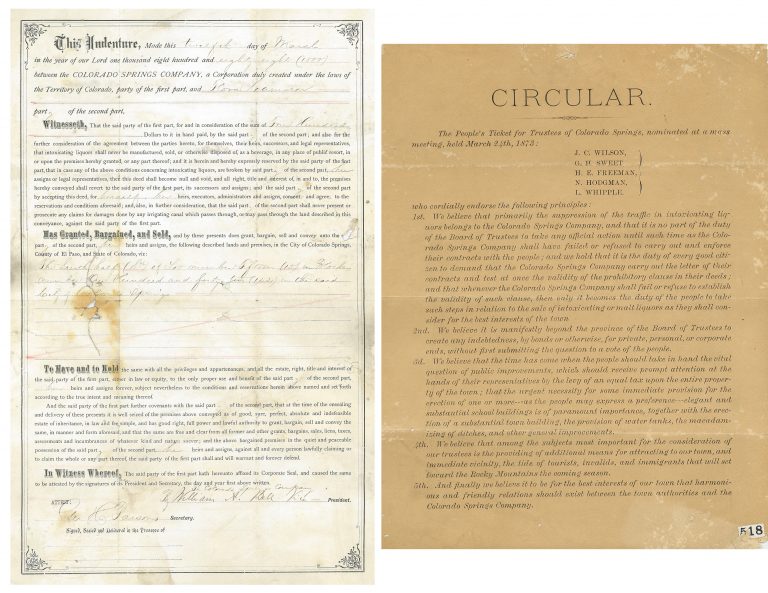 Land Deed w/ Liquor Clause, 1888 & Liquor Circular, 1873